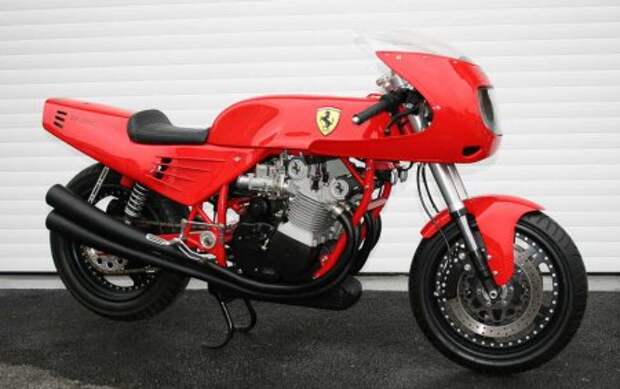 Все началось в 1990 году с того, что инженер Дэвид Кэй (David Kay) написал письмо сыну Энцо Феррари Пьеро с просьбой разрешить поместить шильдик Ferrari — вставшего на дыбы скакуна — на единственный в своем роде спортивный мотоцикл, построенный в честь знаменитого основателя Ferrari. В ответ Кэй получил письмо с личной подписью Пьеро Феррари с разрешением на использование лого автокомпании и пожеланиями всяческой удачи в строительстве мотоцикла.
