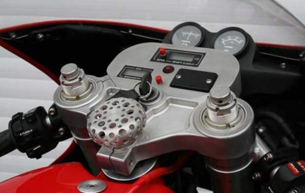Передняя часть мотоцикла получилась весьма современной (напомним, это 1995 год), с перевернутой вилкой Forcelle Italia. Массивные дисковые тормоза Brembo (6-поршневые суппорты спереди и 4-поршневые сзади), специальные 17-дюймовые колеса Astralite, сделанные вручную, и два задних амортизатора WPS дополняют картину технических характеристик мотоцикла.