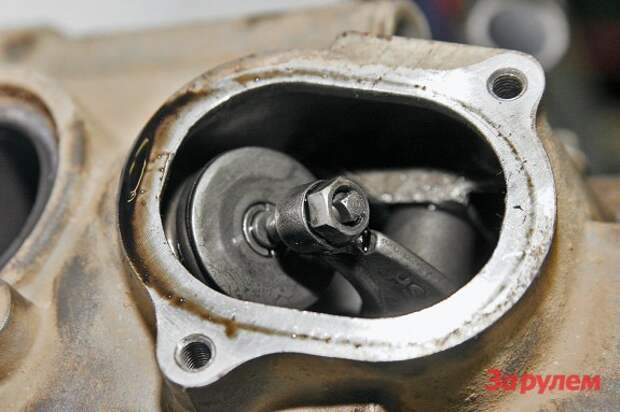 Помимо цепи приходится заниматься и зазорами в клапанном механизме. В принципе регулировка здесь не отличается от автомобильных двигателей. Встречаются и механизмы с коромыслами – где зазор регулируется винтом, и с шайбами – там он задается подбором шайбы нужной толщины. Важно понимать, что если отрегулировать зазор винтом можно буквально в чистом поле, то для подбора шайб требуются, во-первых, те самые шайбы (и вряд ли кто-нибудь из владельцев будет заказывать дорогущий набор для собственных нужд), а во-вторых – разобрать полмотора (придется вынимать распредвалы). Поэтому регулировку шайбами лучше всего делать в специализированной мастерской и – если шайбы придется заказывать (а то и комплект прокладок) – в «мертвый сезон». К счастью, на большинстве современных мотоциклов зазоры между шайбой и кулачком приходится проверять лишь каждые 30–60 тыс. км. Регулировка винтами может потребоваться чаще. Как ее выполнить, показано на фото.
