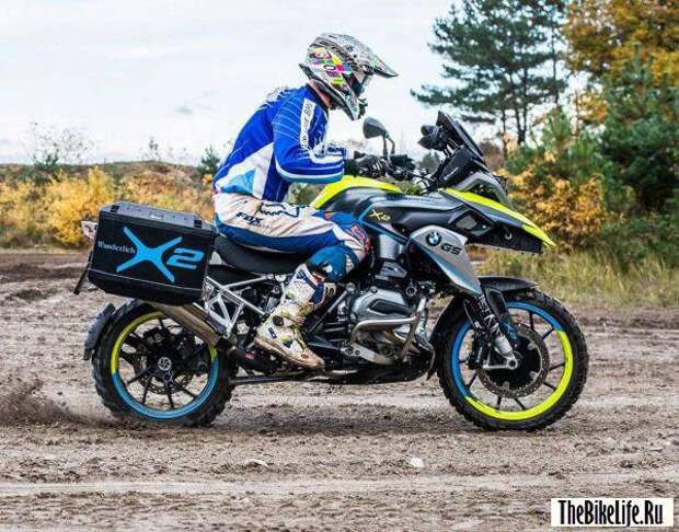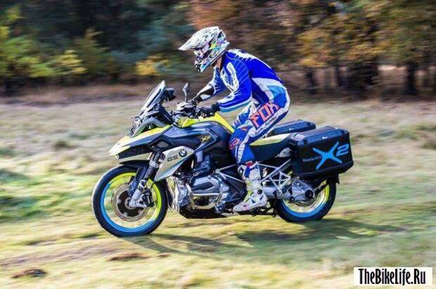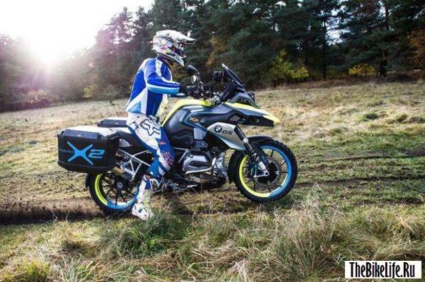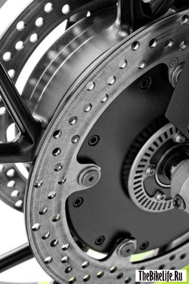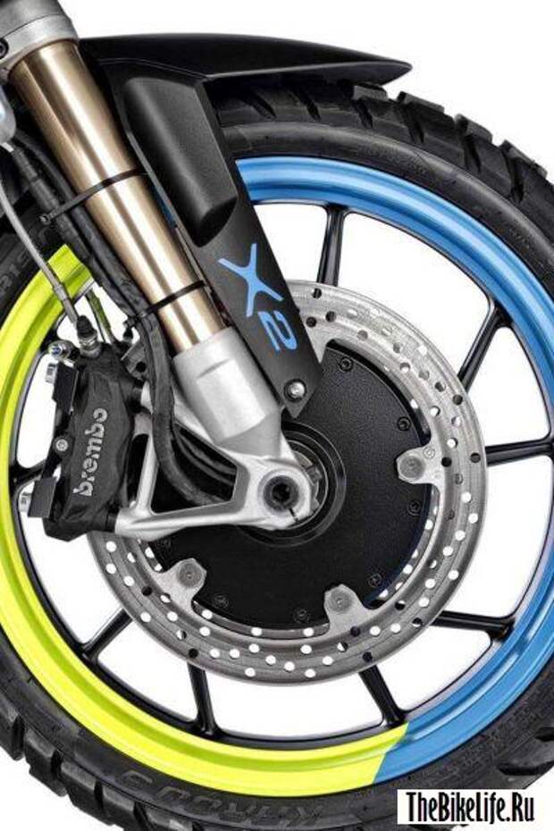 Немецкие мастера назвали свою новую разработку BMW R1200GS LC. В дополнение к стандартному двухцилиндровому оппозитному двигателю GS на переднем колесе установлен электромотор мощностью 10 кВт. Электродвигатель оснащен рекуперативной системой торможения, что отлично помогает подзаряжать небольшой батарейный блок, который, судя по всему, спрятан под передним клювом.