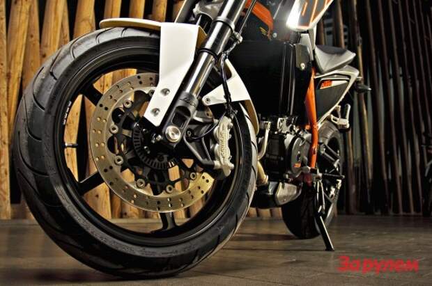 Да, в Европе Duke стал доступнее, хотя и несущественно (розничные цены упали примерно на €1000). Жаль, что скостить себестоимость вышло за счет существенного упрощения некоторых элементов. Например, за счет подвесок – теперь они лишены регулировок гидравлики, можно менять лишь предварительное натяжение пружины на заднем амортизаторе. Заодно перья вилки уменьшились в диаметре (с 48 до 43 мм). В «минусе» и радиальные главные цилиндры переднего тормоза и сцепления, которые заменили аксиальными. Как это аукнулось? Если особо не придираться, то… почти никак.