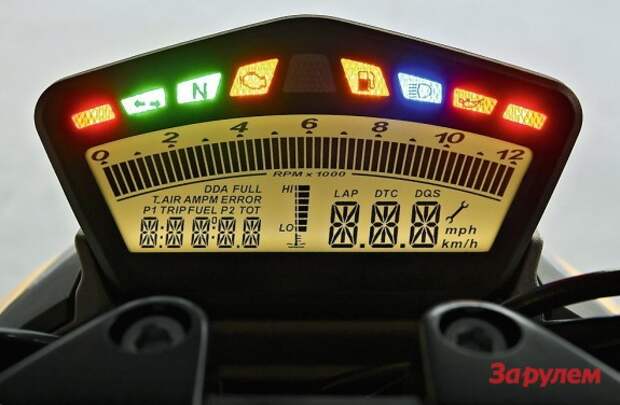 Двигатель просыпается на 5000 об/мин, так что шестую передачу вы сможете использовать лишь в Германии – на этих оборотах байк уже несется со скоростью 135 км/ч.