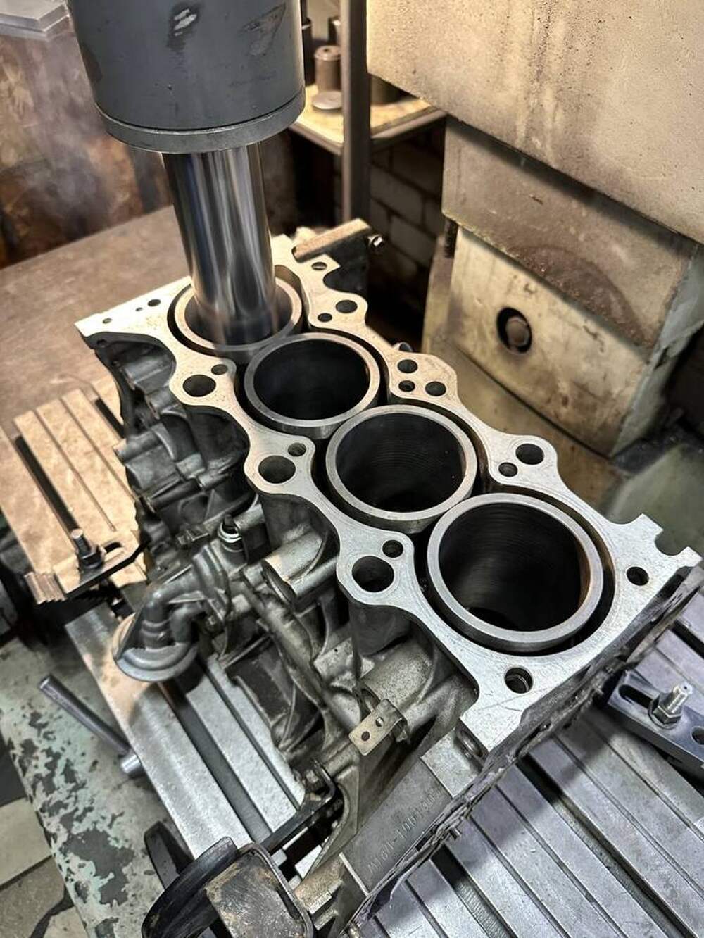Продолжение Гильзовки M18 На следующий день, когда засох клей, продолжаю делать данный блок. Ставлю на станок и начинаю растачивать под поршни. Фото 2, 3, 4 - такие вот поршни, кованные. Делаю на них зазор 0,06-0,07. Растачиваю в 0,02, после хонингую уже в нужный размер. Видео 5 - процесс